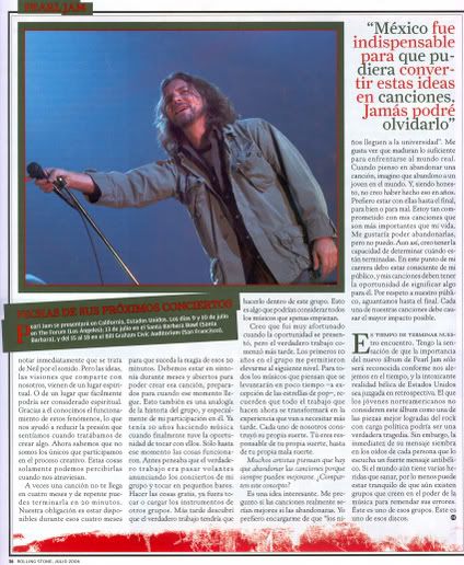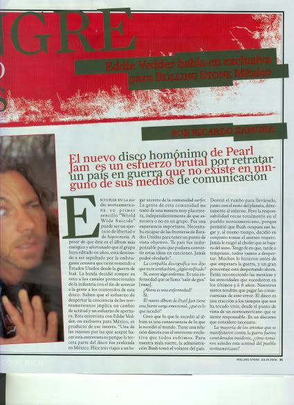 if this has already been posted, i suppose you can disregard this. i was in cancun 2 weeks ago and walked into a convenience store and i see eddie vedder on the cover of the mexican rolling stone. its definitely different from the one released in the US. eddie vedder is by himself with his arms in the air showing his muscles.